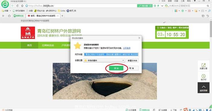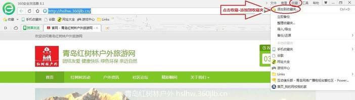 还可以通过工具栏收藏中找到:官网—青岛红树林户外旅游网,打开即可。