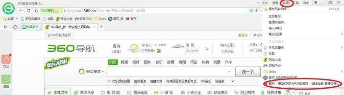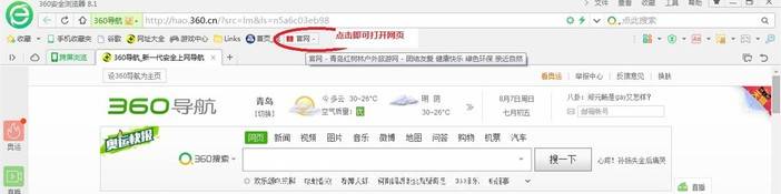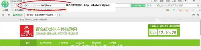 打开浏览器—在工具栏内点击:官网—青岛红树林户外旅游网,即可打开网页。