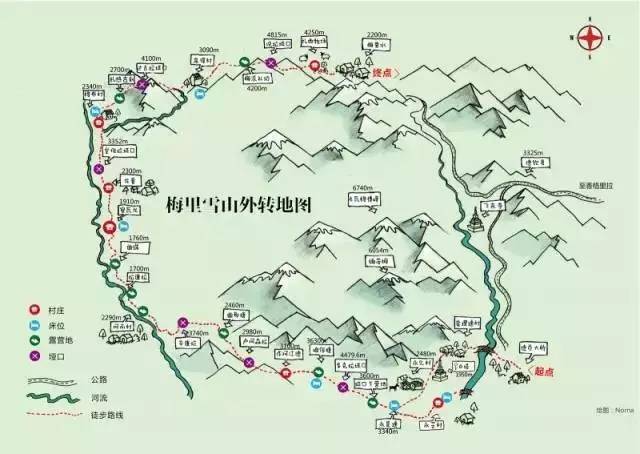 除了是滇藏线的必经之地外,很多人都会选择来梅里转山,梅里转山总体分内转和外转,内转有时候也叫雨崩徒步,一般需要3天左右;外转绕梅里雪山一周,进入西藏,再回到云南,纯徒通常需要13天左右,如果坐车,则可以在8天左右完成,全程需要重装。