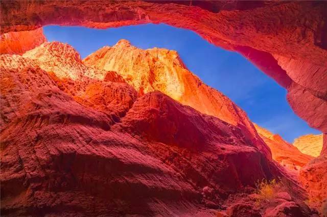 天山库车大峡谷,又称克孜利亚大峡谷,位于新疆阿克苏天山南麓,由红褐色的巨大山体群组成,为亿万年风雨剥蚀、山洪冲刷而成。整个峡谷由红色砂岩,砂砾岩构成,当地人称为“红色的山崖”。库车大峡谷内还新发现有盛唐时期的千佛洞遗址,石窟内的壁画艺术水平可与同时代的敦煌壁画相媲美。