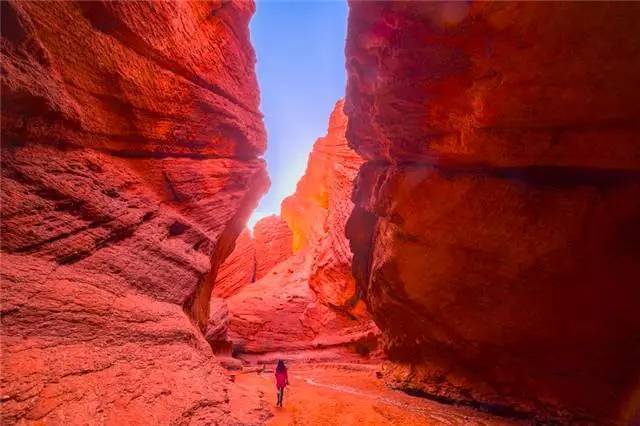 库车大峡谷据说是一位年轻牧羊人在99年盛夏放牧时发现的。峡谷东向西纵深长约5.5公里,大峡谷由主谷和七条支谷组成,近似呈南北弧形走向,全长 5000 多米,峡谷深一般 150 米到 200 米,谷底最宽 53 米,最窄处 0.4 米,呈典型的地缝式隘谷,仅容一人低头弯躯侧身通过。从库车出发,半天时间就可以玩个来回。