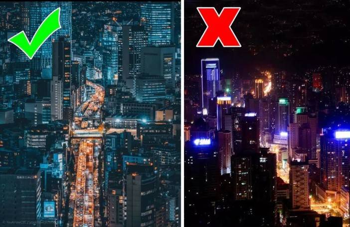 拍夜景建筑很多人有个误区,觉得从下往上拍才是最容易、拍出的效果最好。但他们不知道的是,从上往下拍,能更清晰全面拍出建筑的美。(选角、构图、全局观在夜景拍摄中功不可没)