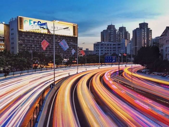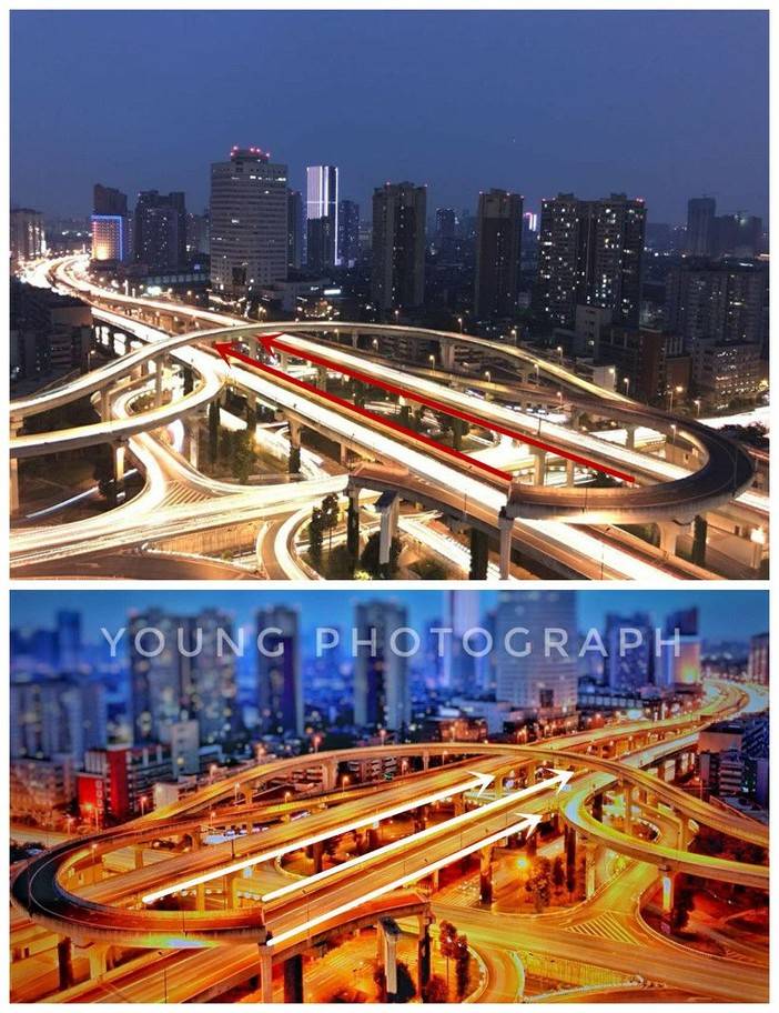 总结:拍「车流轨迹」时,大家可以根据现场情况对感光度、快门速度、曝光补偿、白平衡等参数。拍摄过程变数会很多(上面的参数只给大家作参考),因此画面的某些部分难免会出现过曝。如果现场过亮,可试尝试将曝光时间适当缩短,曝光补偿建议调到最低。这就给我们提出了更高的要求,一方面我们要通过反复尝试来达到相对完美的效果,另一方面则要通过适当改变视角、构图来进行补偿。