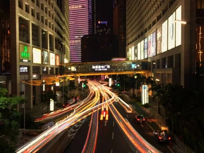 拍车轨主要拍的是车流的方向,这时要选择车流多的地方进行拍摄。(如果车太少,而且车轨比较稀疏,曝光时间短,效果会不好。就算增加曝光时间,获得更多车轨线,还是会过曝且噪点多。)