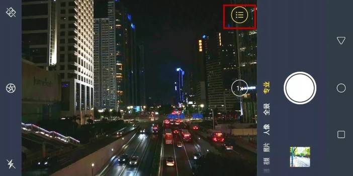 打开相机应用,点击屏幕左下方框选按钮,进入【专业模式】。