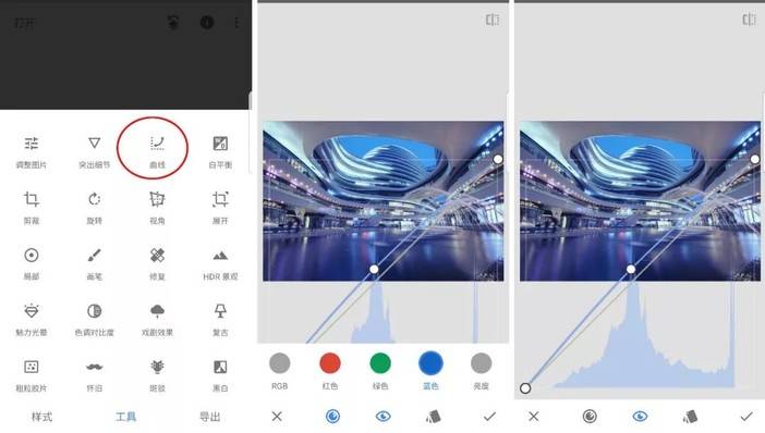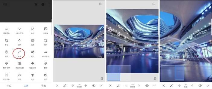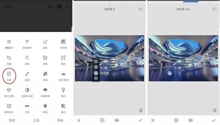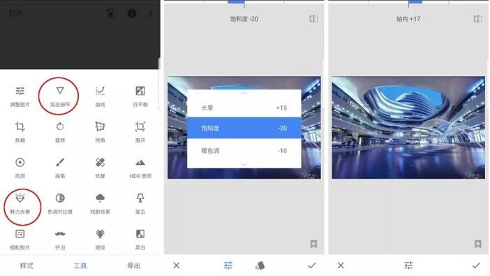 后期软件:snapseed、Lightroom、泼辣修图(下图依次排列)