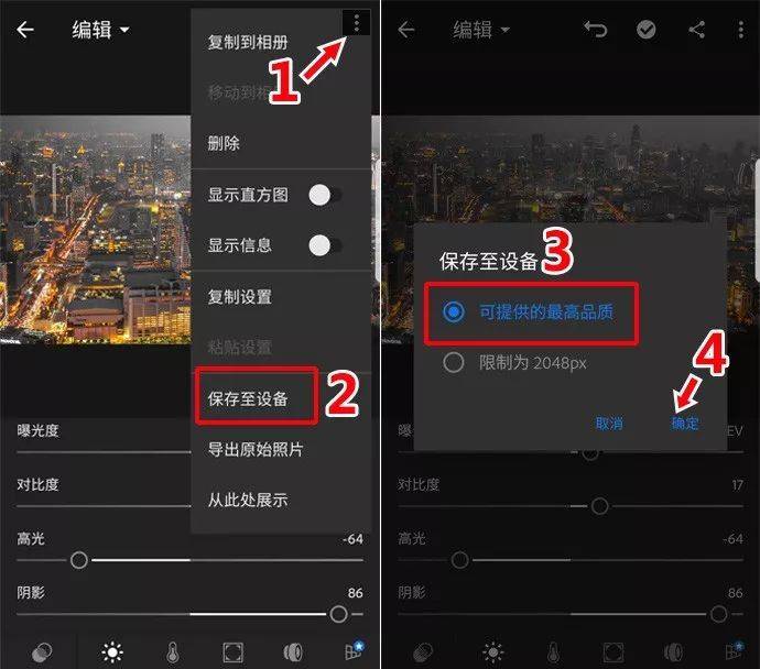 调整完毕后,照片就可以保存导出了,操作如下图。