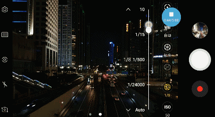车轨的关键技术要点,使用慢速快门,拉长曝光时间,才能记录下曝光时段内车辆行进的轨迹,归纳起来就是一句话——使用相机的慢速快门进行长时间曝光。大部分安卓手机自带专业模式,选择快门时间通常为4~8秒,其它选项按现场情况而定。