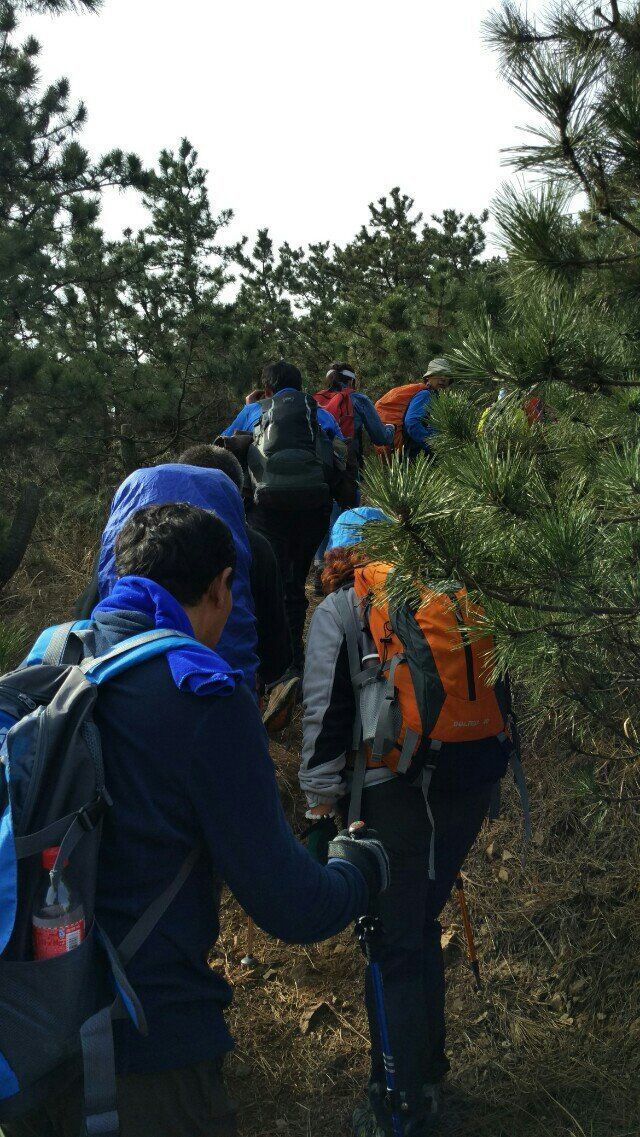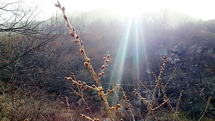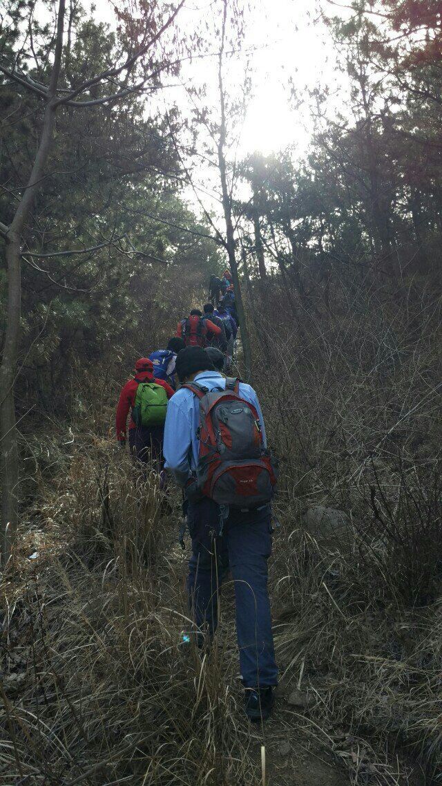 记住这一天,2016年3月6日,正月二十八。你有你的大世界,我有我的小生活。昨日已成过往,今朝又是美好的开始。 天还未亮,我踩着月光就溜出了门。天气甚好,无风,起了个大早,从容而行。驻足在一家无狗的农户门口,呵呵,大有眼福。门口数枝梅,三月独自开。被誉为“花魁”的腊梅,在晨寒中坚强而高雅地盛开,暗香浮动,凌寒飘香。唯有“一树独先天下春,不与百花争时光”。农家对面大片的樱桃树 ,正旺盛地生长,树芽萌发,在向我预示着4月下旬盛花期的到来,期待着6月底果实成熟之际,尝鲜大军的涌来。八点十二分,一行20几人准时沿土石路出发。小崂顶不属于景区道路,只有跟随驴友们野路探访。我们沿茅草丛生的上坡野路,借着