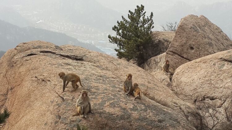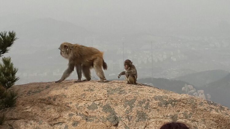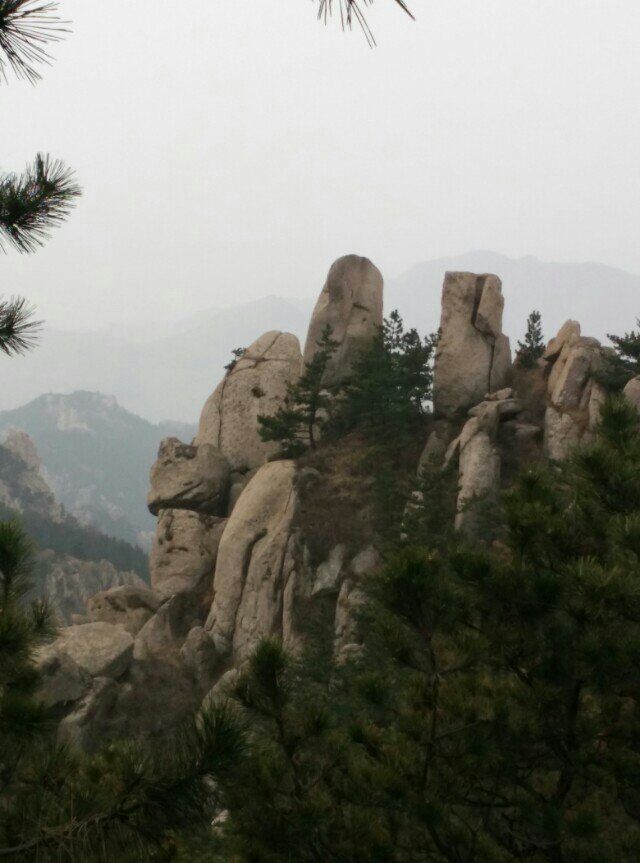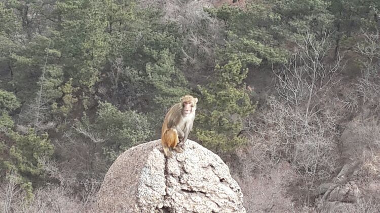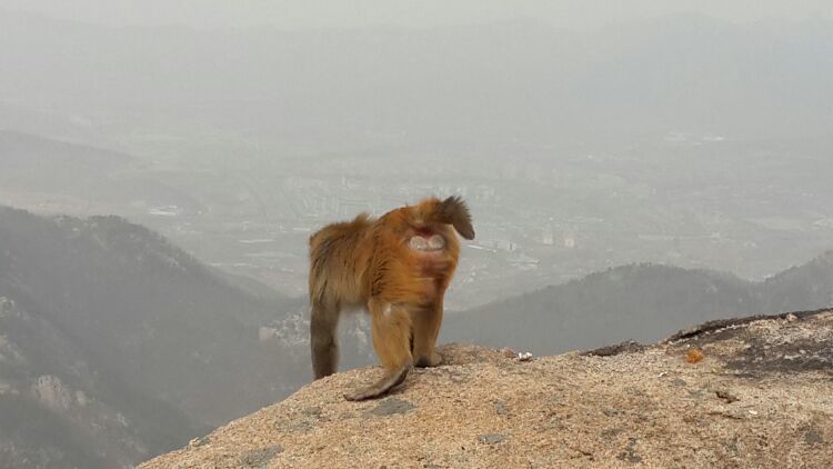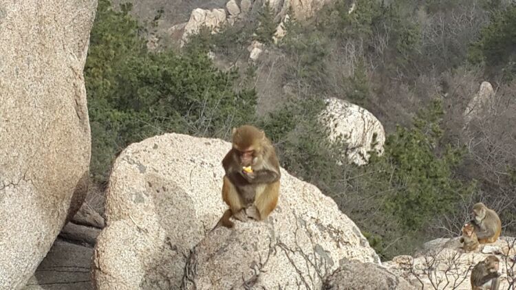 10点多刚到崂顶时并没有猴的踪迹,拍照、聊天,也算游兴不减。