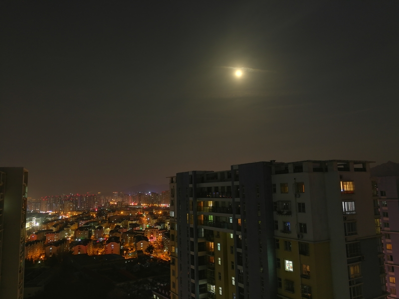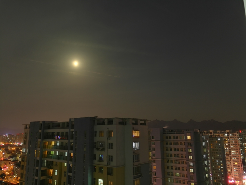 晚上吃完饭却发现有个大大的月亮挂在窗前