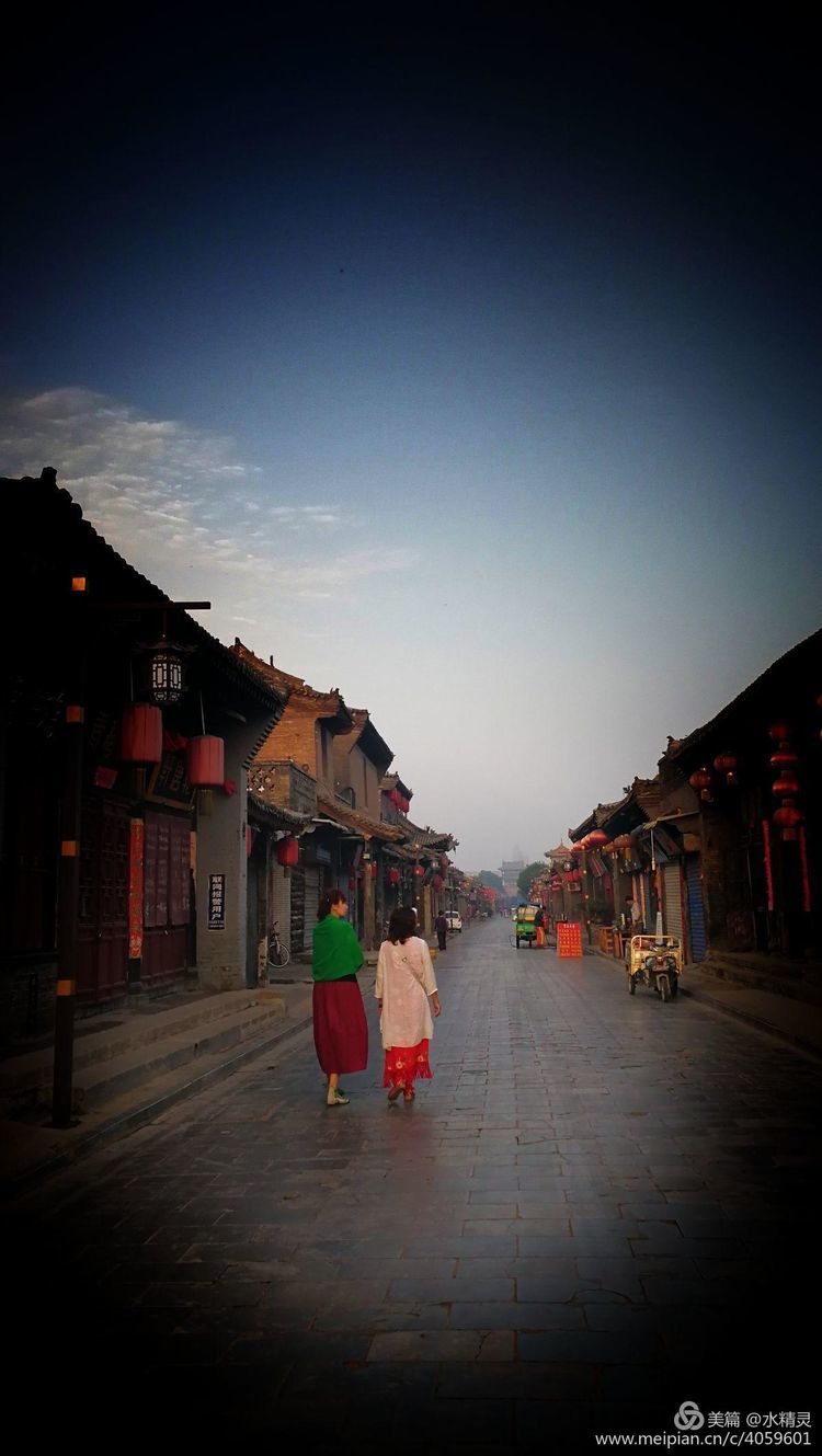 有人说:“平遥是底蕴深厚的乱世佳人,经风经雨却宠辱不惊"。清晨,初升的太阳轻轻的抚摸着这座安静而惬意的古城,信步走在大街上忽然就被擦亮了眼睛,看到了与晚上截然不同的古城,整个古城换了一身青色长衫,沐浴在阳光下,每座房屋,每一处雕刻都透着深邃。只想在这青石板路上慢慢的走着,用手轻轻的抚摸着这古老的建筑,古城的千年过往一一擦肩而过,任时光老去,古城容颜未改。