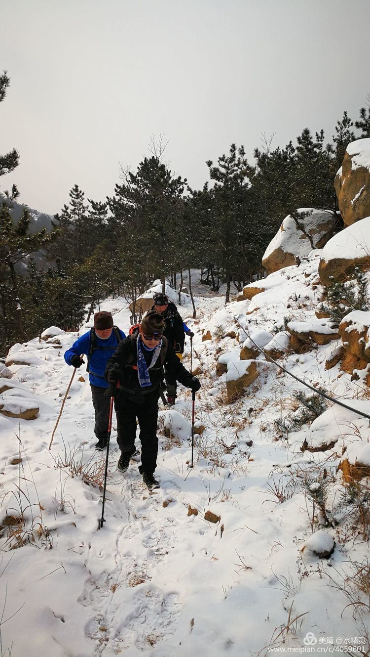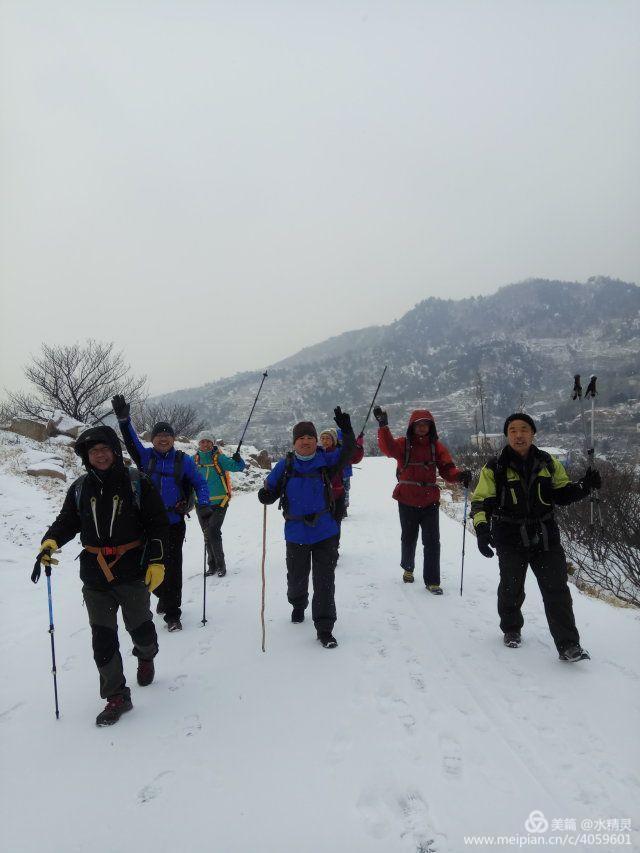 豆哥与法哥在雪景的诱惑下,看到路线比较休闲,今天也参加了活动,没想到临时改了线路,休闲游变成了强度较大的雪山登顶,走了大约三分之一路程时,为不拖累大家,他们决定往回走,虽然没和大家一起到崂顶有些遗憾,但选择往回走需要更大的勇气,你们始终都是我们队伍中的一员,你们棒棒哒。