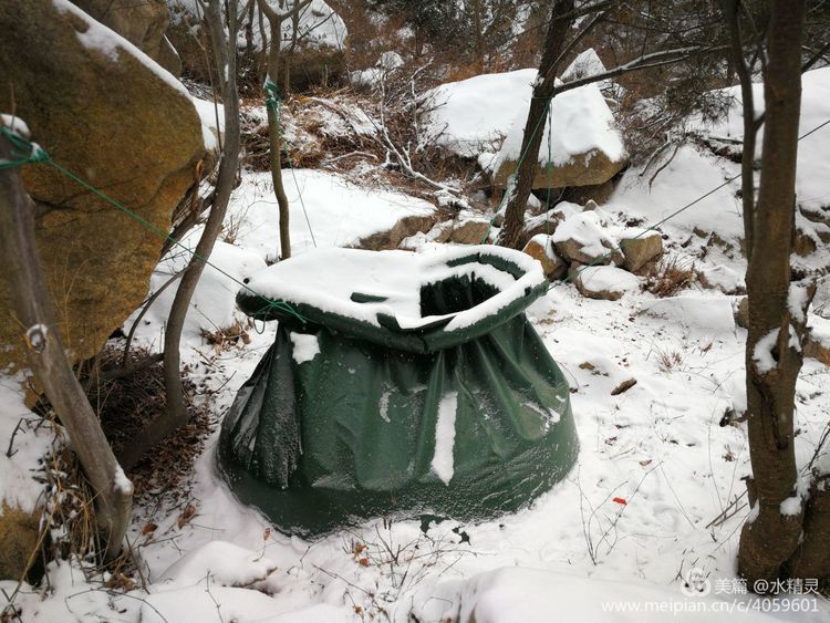 一路碰见好几处这样的防火水袋,本以为手按在上面会有晃悠悠的感觉,可没想到整个身体的力量都要用上了,却半点都没动,感觉如铁桶一般,原来整个水袋里的水都成了冰坨子。