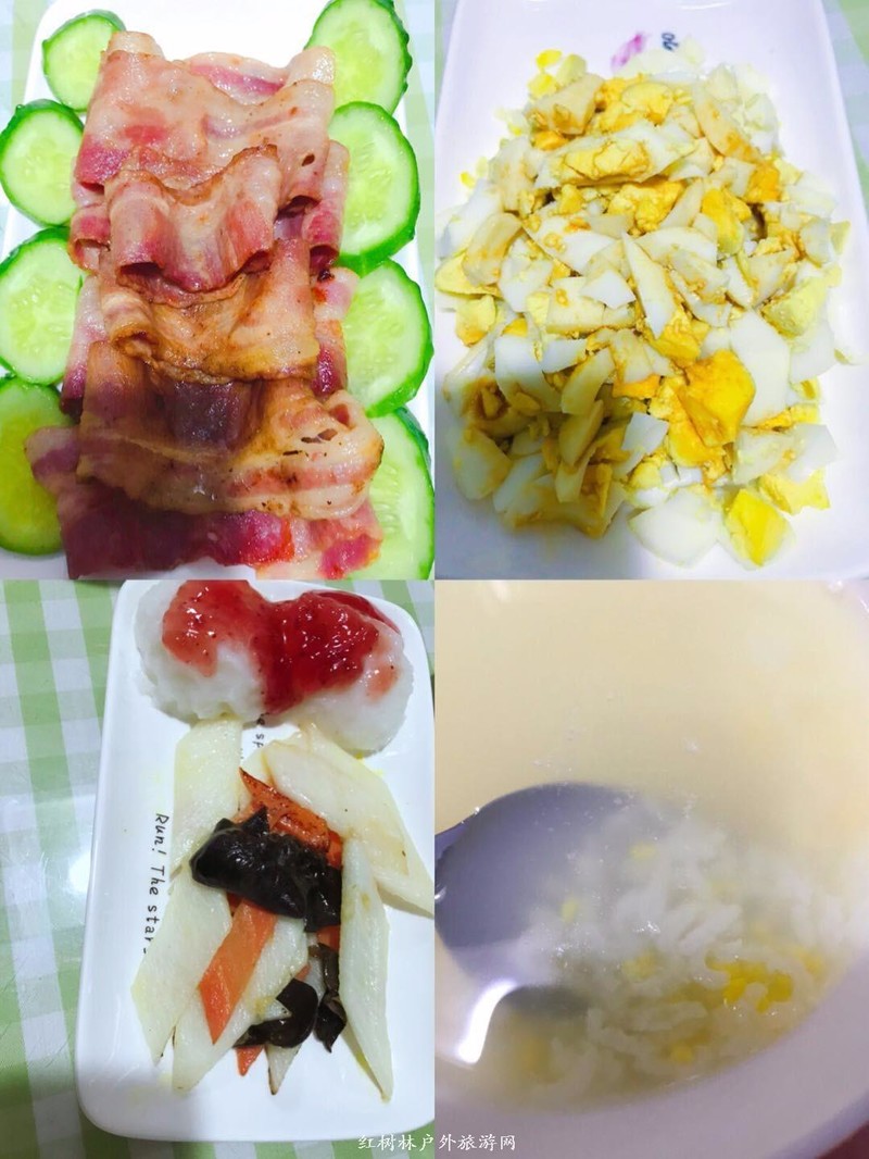 晓的早餐:煎培根,味极鲜拌蛋,草莓山药拼清炒山药,玉米茬稀饭