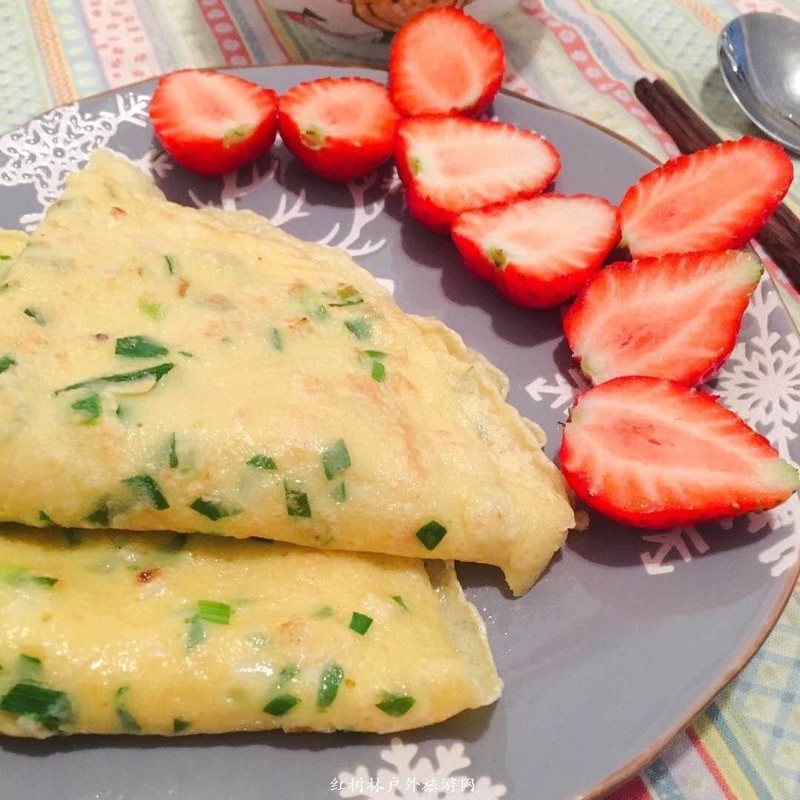 材料:面粉、鸡蛋2个,小葱2颗,水半碗,油少许。