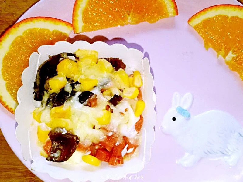 你一定想知道那个鸡蛋杯是怎么做的吧 做法来啦: 在蛋糕纸杯里打入一个鸡蛋撒上香肠丁,玉米粒,葱花最后上面放芝士丝,烤箱180°烤10–15分钟,喜欢有滋味的淋一勺味达美就可以了。喜欢什么就放什么。