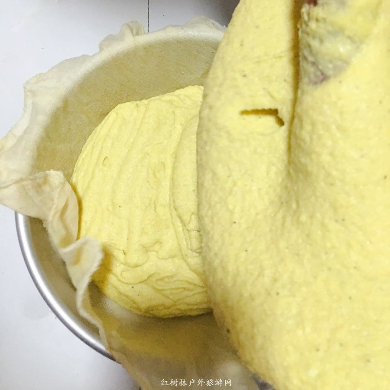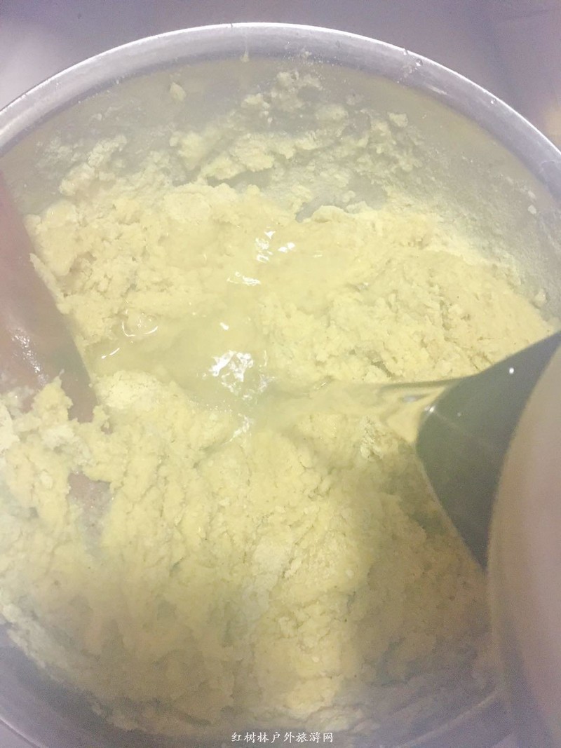 黄黏米面 放热水 边放水 边用擀面杖搅开