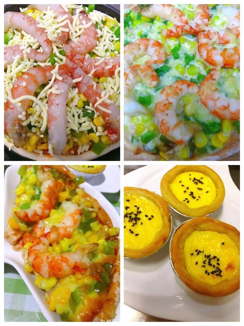 晓的早餐红虾玉米粒披萨,蛋挞[愉快]