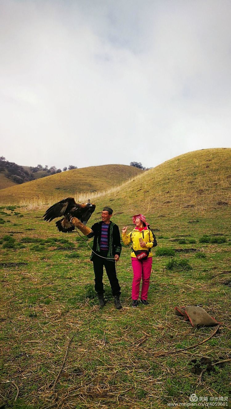 遇到一个养鹰的人,他热情的招呼我们合影,并逗他的鹰儿展翅,让它展现最优美的身姿。