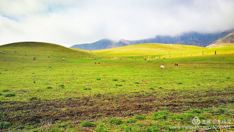 牛羊认真的在草地上吃着嫩草,仿佛没有什么比这更重要的事情了。