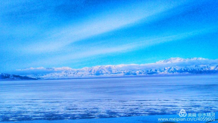 没想到竟再次途径赛里木湖,我们是多么幸运啊,可以在不一样的天气里看到不同的赛湖,湖面的冰虽未融化,可也阻挡不了它的美,它是那样安详宁静。远处的雪山将白纱一样的平流层云雾轻轻的揽在腰间,将洁白的山顶插入湛蓝的天空,它是巍峨的圣洁的美丽的。