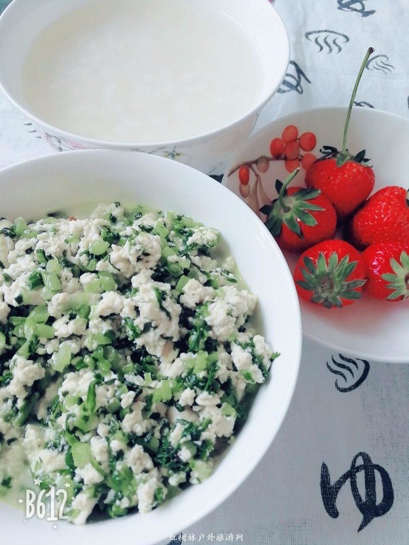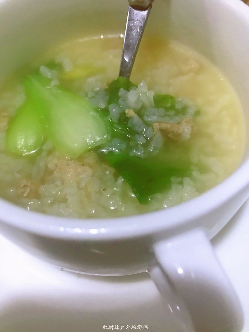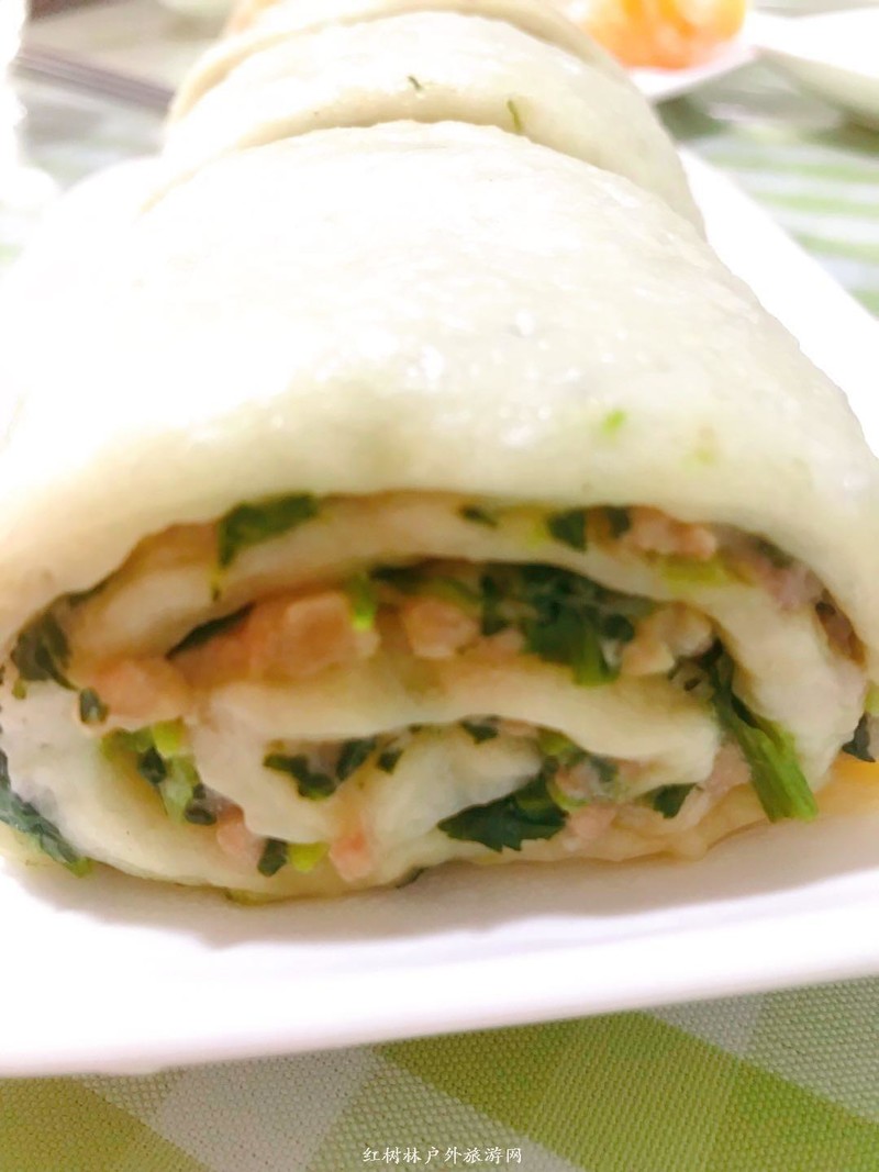 晓的早餐分享:菠菜肉卷,稀饭咸鸭蛋(2018.5.8)