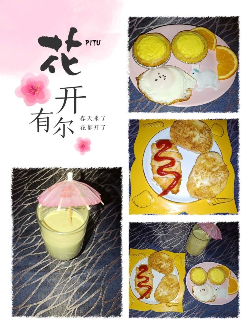 晓的早餐:烤牛奶燕麦、蛋皮卷儿、银耳汤[太阳]