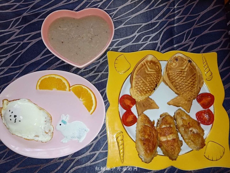 笑笑早餐分享: 卡通餐包,土豆泥芝士虾球(没有面包糠了用椰蓉代替),橙子 煎蛋,樱珠,牛奶(2018.5.11)