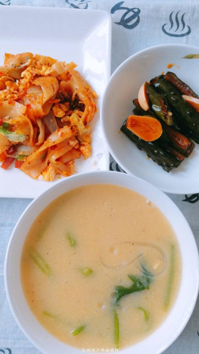 炒烤冷面,甜沫,黄瓜小咸菜,这也不错哦