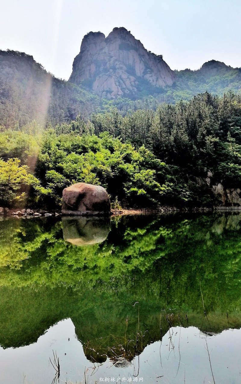 顺着小路走到尽头,竟“误入歧途”来到了一个小水库旁,虽然不是我们要走的山路,可眼前的景色却是如此迷人,真是意外的收获。每次爬山最让人向往的其实就是这些未知的偶遇,它带给我们各种不同的体验与惊喜。俊美的青山倒映在平静的水面上,祥和宁静。虽然没有风可空气中却透着凉爽,人也变的清凉起来,惊喜的心想停下脚步,在水边悠闲的小坐,身心都融入这清幽中。