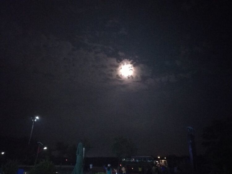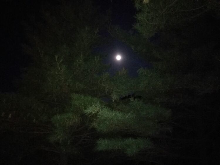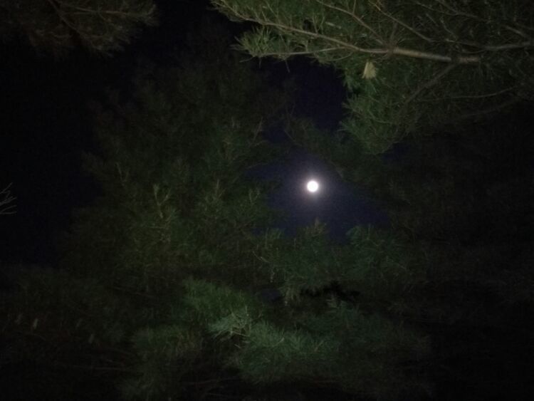 月光透过松树间的空隙照到地上,若隐若现,亦真亦幻,不用手电和头灯,山路也被月光照得分明。幽幽地伴着松林间时隐时现的那轮皎皎明月,心底莫名感动,临来时的恐慌和紧张早已被这静谧湮没。 这段山路比较好走,崂山的山路上藤蔓比较多,不仅要小心脚下别被绊住,还要小心脑袋别被横插出来的断木撞懵。而这里虽然步步上坡,但是脚下只有山石,清爽干净,心情也如同这如水的月光一样柔和。