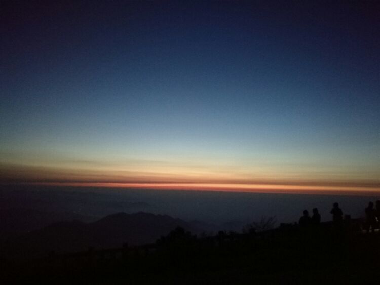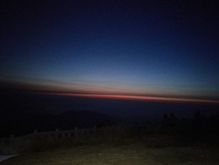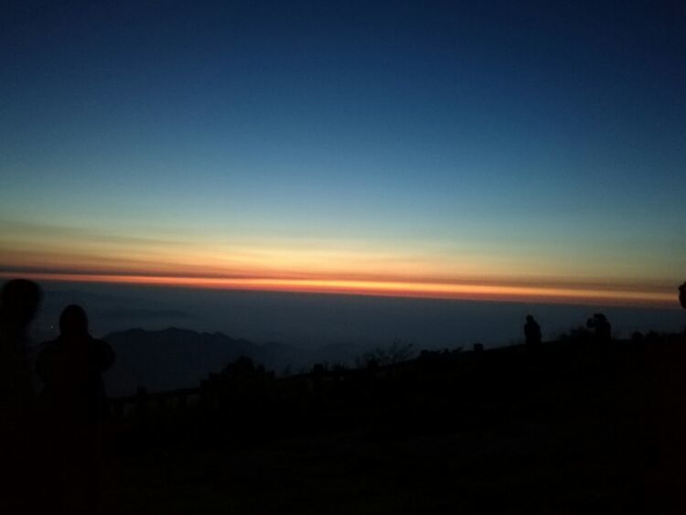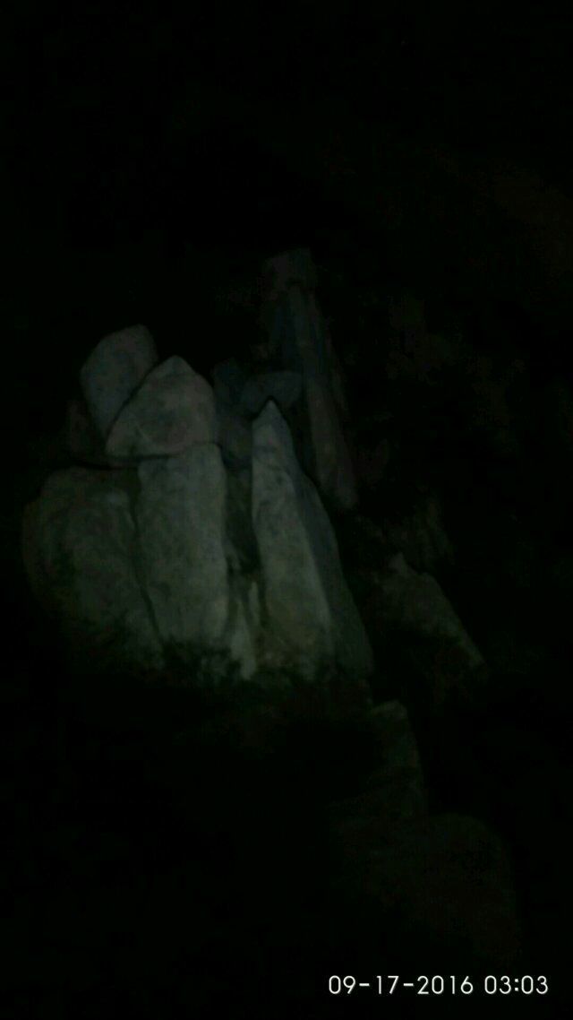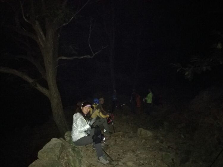 再次休整时,海拔745米.....每次休整,红树都要点一下我的名字,紫烟上来了吗?也许我看起来是最不中用的一个吧。 海拔一米一米被征服者踏在脚下,危险也随时随地在出现,走着走着来到一堵 陡如刀削的崖壁,崖壁上有一条只能一人通过的小道,左手边好像是悬崖,因为天黑看不清楚,我虽然有些恐高也得装得若无其事,调动大脑所有的精力,扁过身子,面朝悬崖左右脚交替横行起来,生怕直行会身子一歪掉下去一般。幸亏是夜里走这条路,如果是白天大约我就不敢走了。听领队说这就是恐龙的脊背。回想刚才在恐龙的脊背上走过,真是后怕。