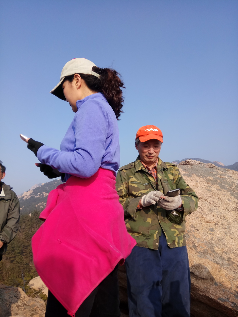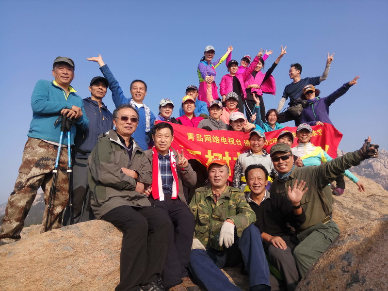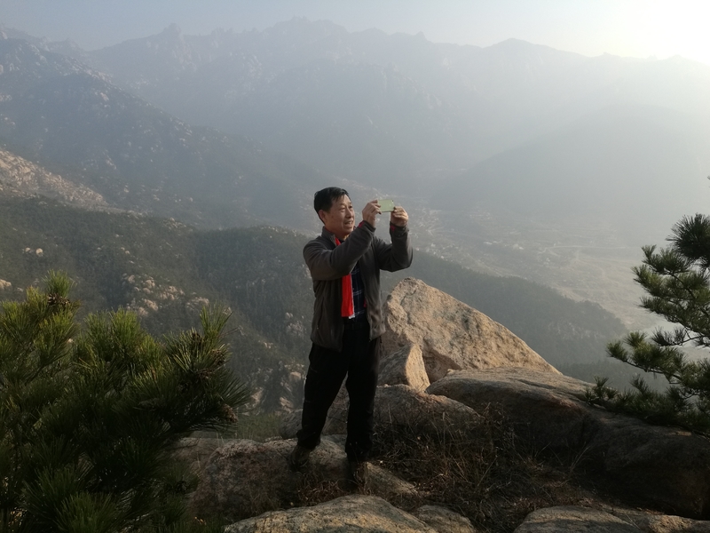 山途中休息之时,号称“崂山地溜子”的山水老师,也是我们这次的带队向导,为我们大家带来原创搞笑歌曲《大灰狼》,清唱一曲,让无数驴友“尽折腰”,笑声、掌声回响于山谷,在蓝天白云间飘扬。