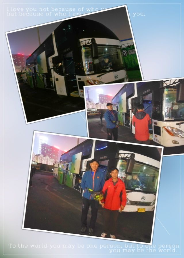 开心快乐的旅程要从高端大气上档次的豪华大巴开始。两位大哥开心的在车前留影,让那些在家里猫着的人们眼馋着急吧。我们要出发唠~