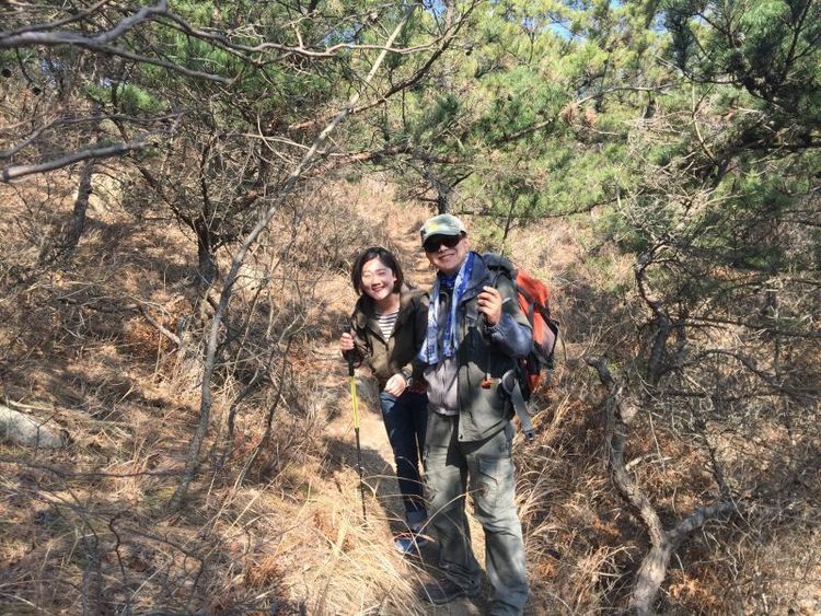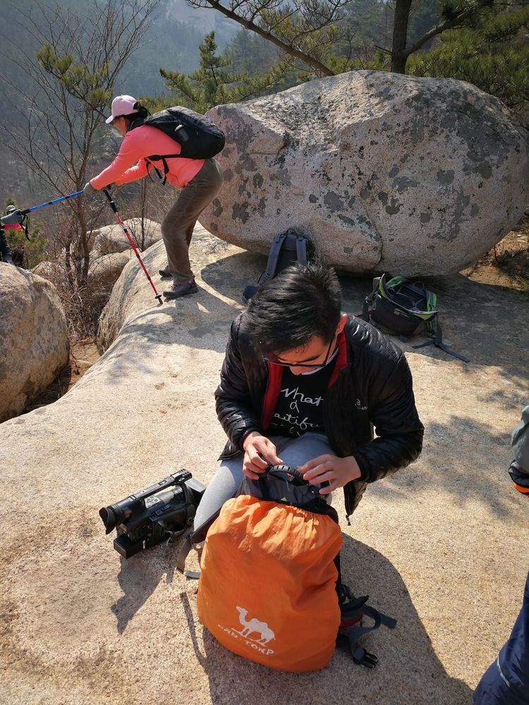 由于小林穿的不是登山鞋,而山路有些陡不说还比较滑,都福大哥与红树领队怕她摔跤,就这样一路拽着扶着走到目的地,在红树林户外就是这样让你特别有安全感。