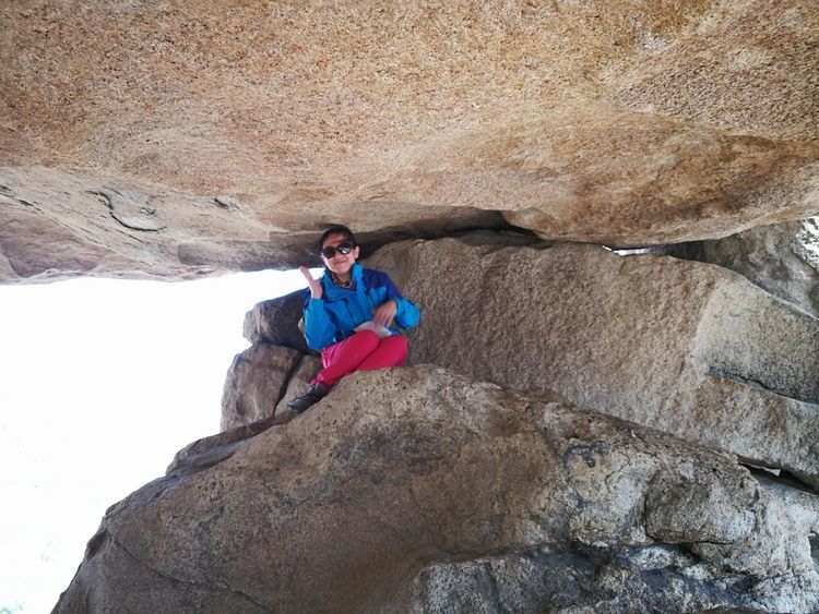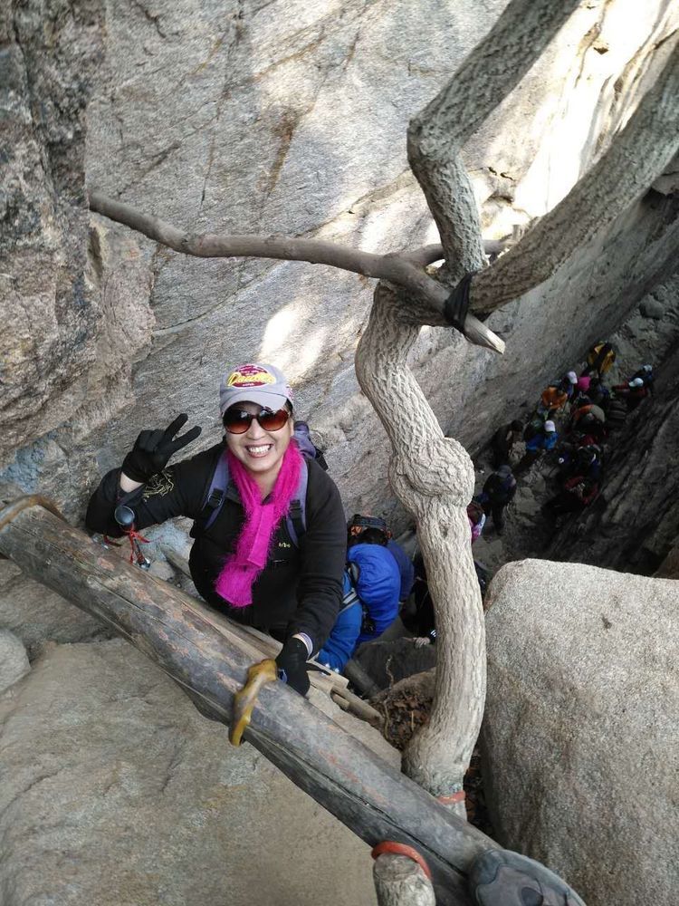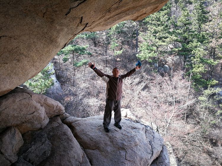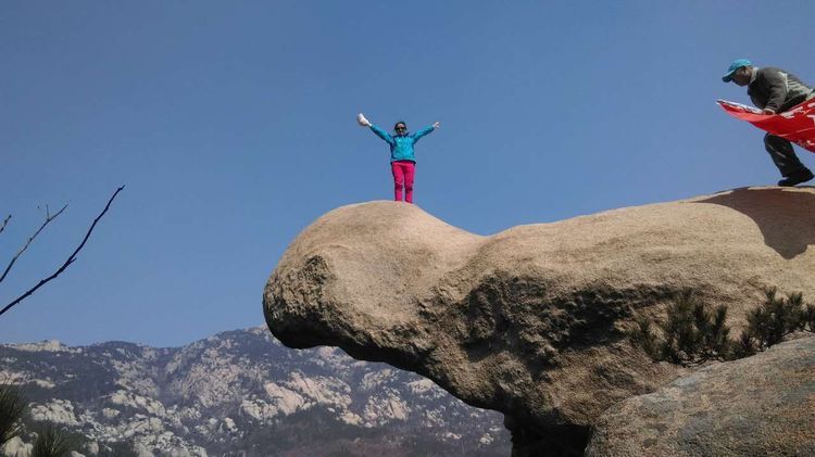 大哥怕我居高,更怕有危险,特意让我站到石头里侧,谢谢唠。