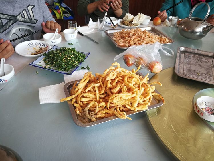 终于可以吃饭了--大槐树农家宴,看着很火的样子啊,原来人家是用托盘上菜的。