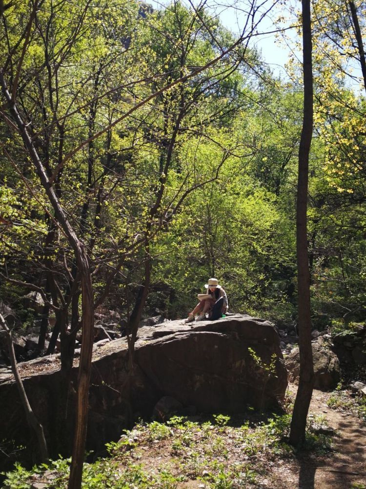 没走多久就看到一些年轻人坐在山石上写生,只有美丽的地方才能吸引这些年轻的艺术家们。