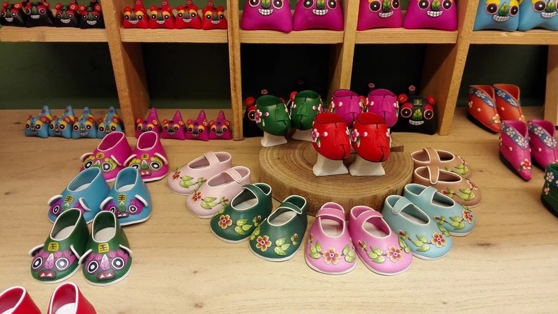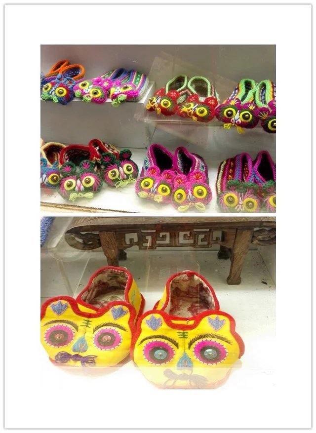 橱窗里的童鞋,乡村气息很浓,同事喜欢针织,立马开玩笑的说她退休后可以专钩小鞋了