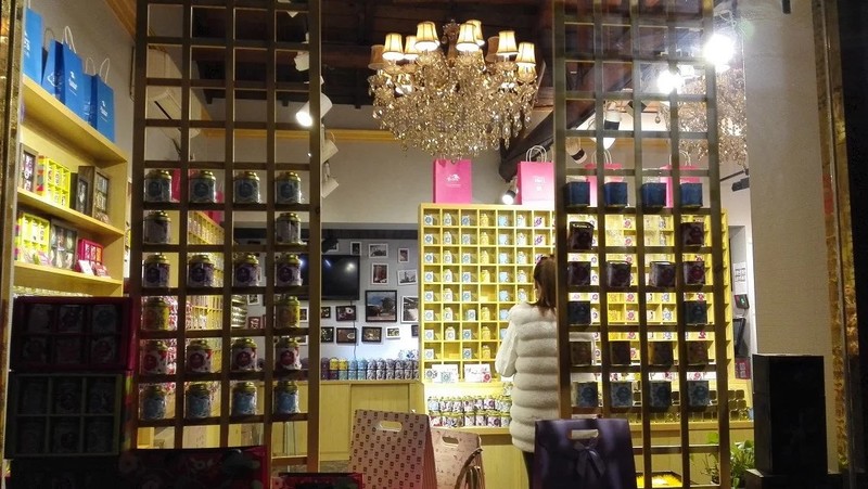 这摆设是不是有点像化妆品店啊,其实这是一家卖干花水果茶的,不让拍照只好将就着在外边看看了