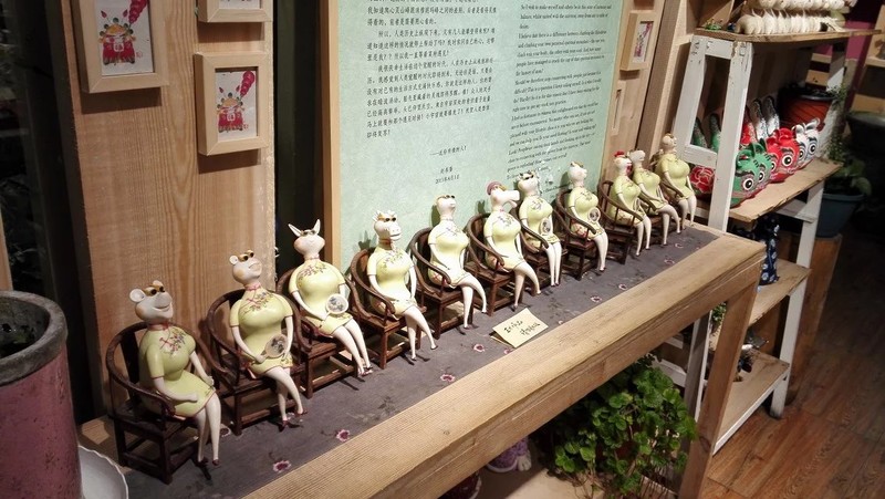 走到小巷的另一个口,就看到了这小屋里的剪纸,里边住着一个侏儒人,他一直在剪纸,而且说剪一套需要2个小时,本来我拍了几张照片,可他长得实在有点不忍,最后只好删除了,很怕晚上做噩梦。