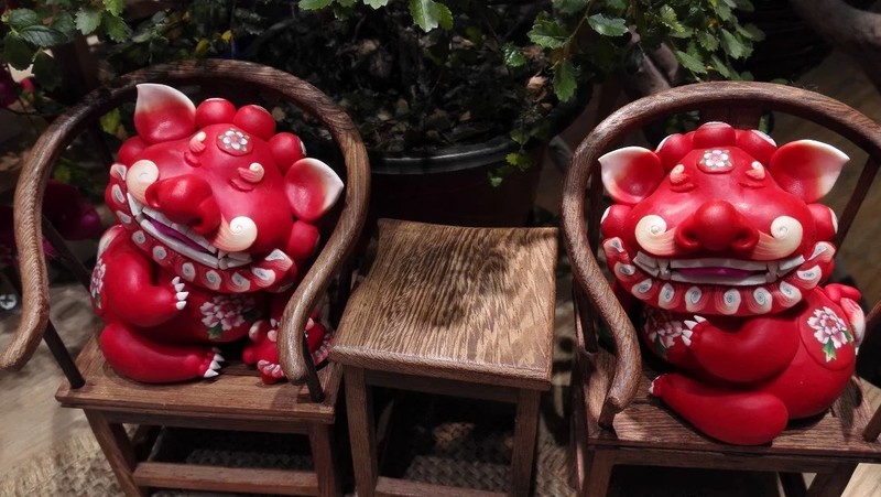 一进门 迎接你的是这一对栩栩如生的彩狮子